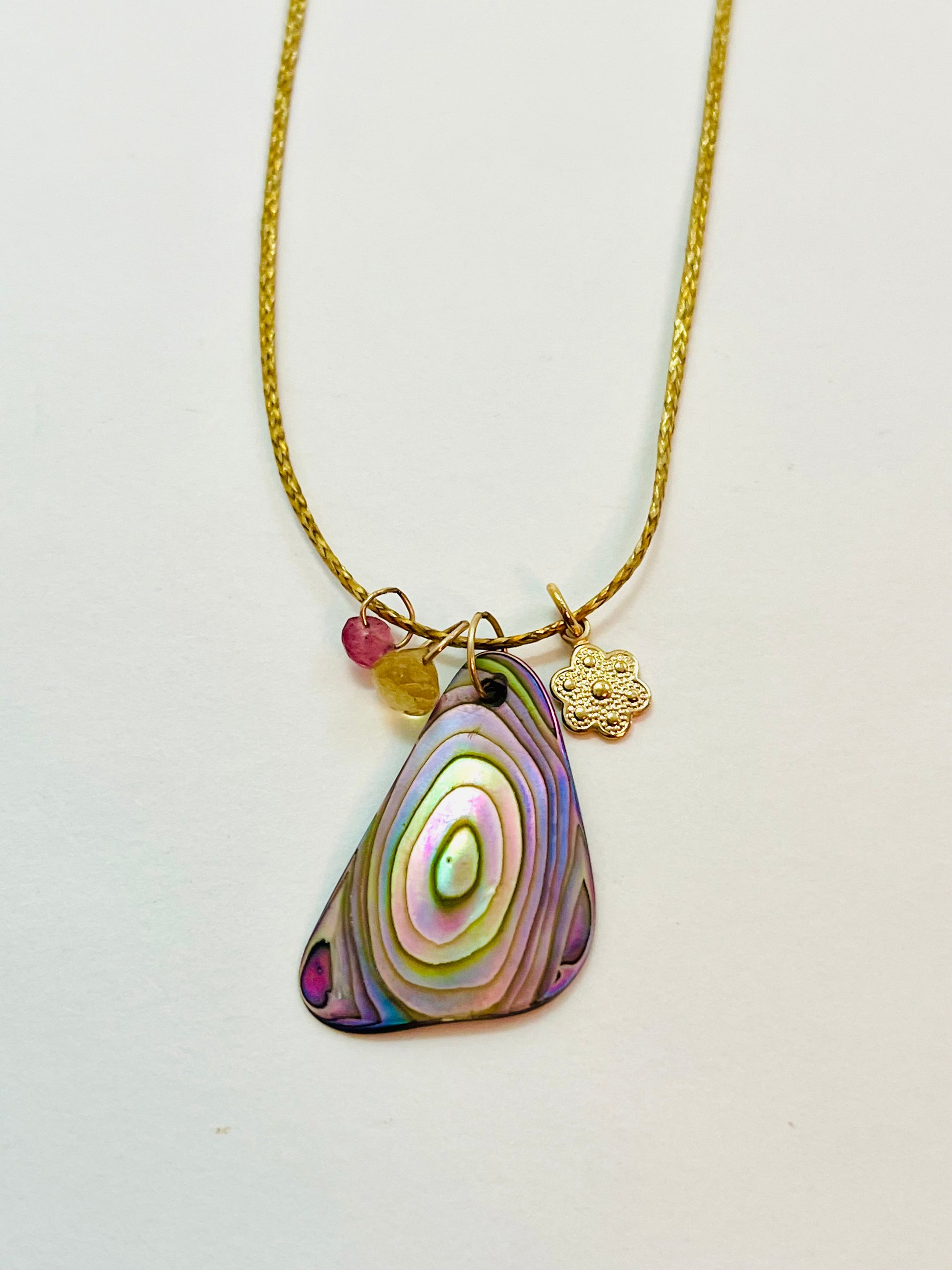 Caroline Abalone Cord Necklace With yellow and Pink Torurmaline